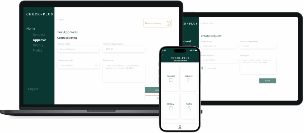 Check Plus is an intuitive use system to submit and approve corporate actions for real time decision making. It cuts through the clutter and creates accountability through automatic concise business records and customizable structure.
